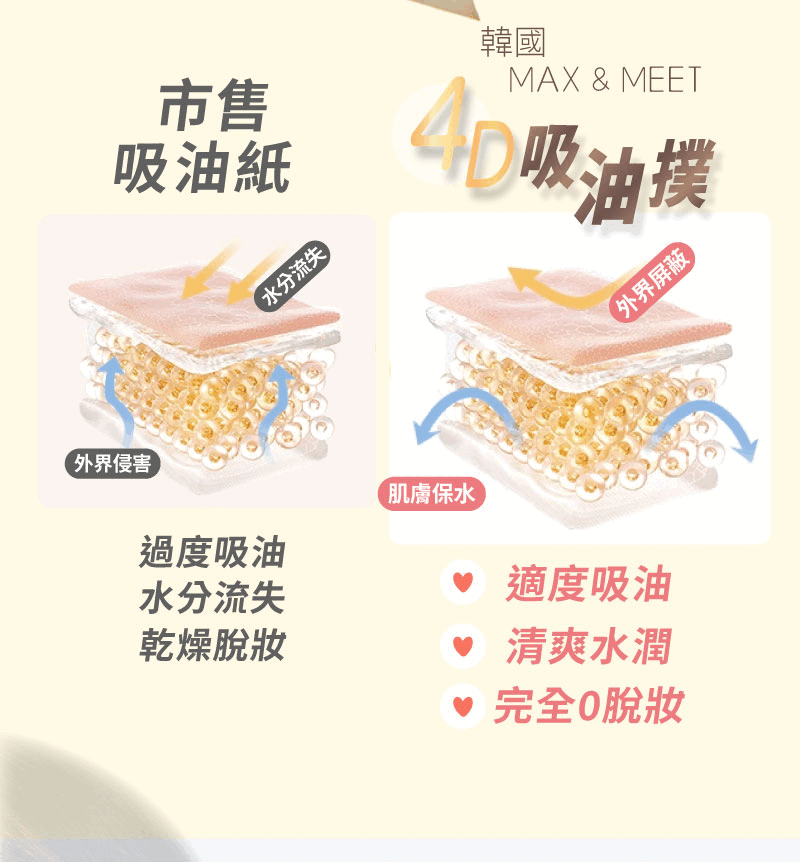 5分鐘前專為大油肌設計✅3倍吸油✅按壓妝不花【面部吸油紙】吸油不吸妝,保持妝感完美的秘密 - 『囤貨必入組』4入組 - NT$1598