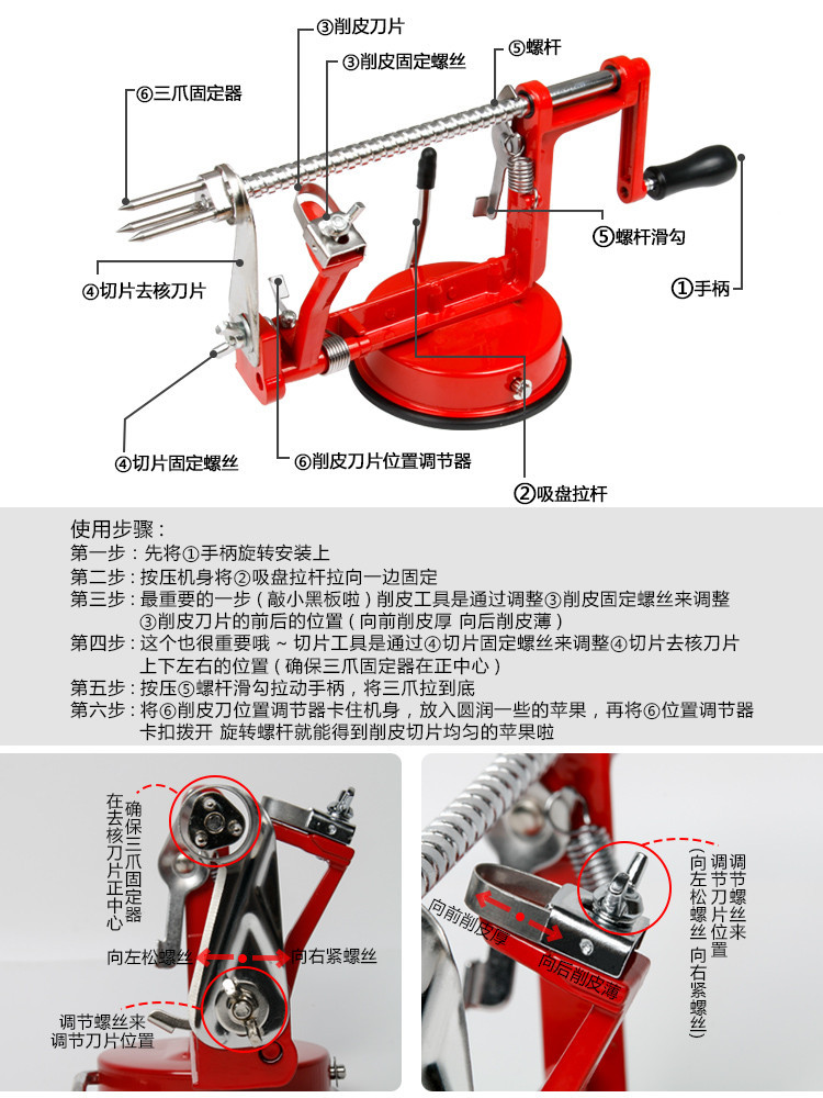 5分鐘前手搖蘋果削皮器 三合一削皮切片去核 削皮機多功能家用去皮廚房削水果神器 - 優惠價1入組NT$899
