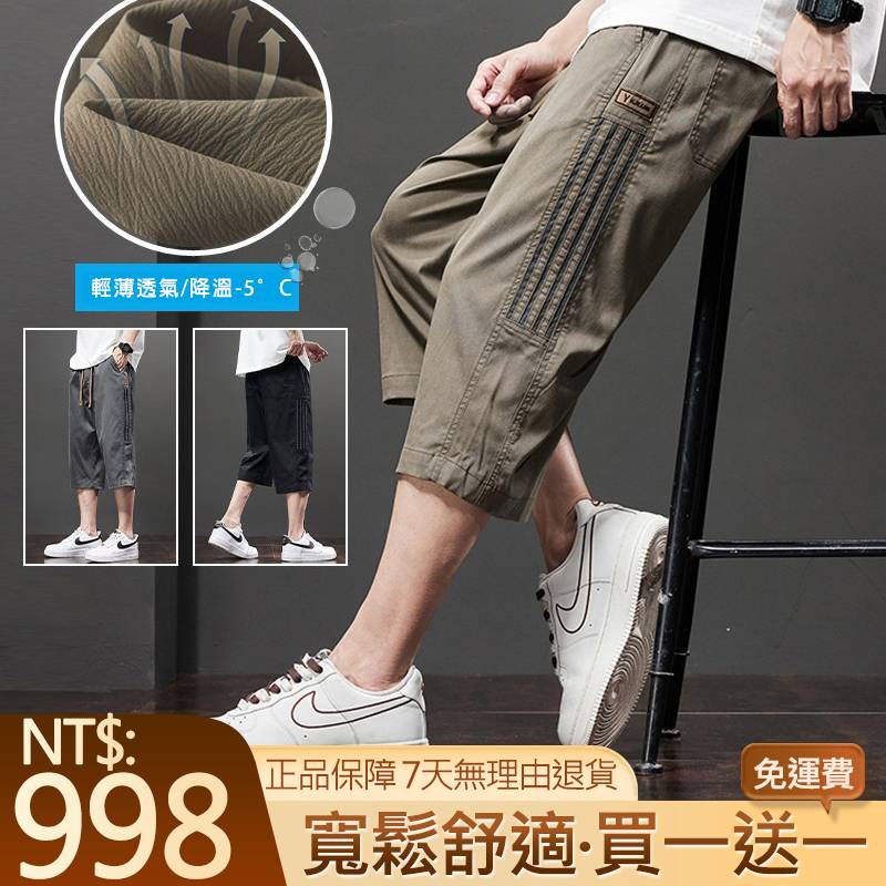 5分鐘前夏季涼涼韓式7分褲,上身清爽又透氣,寬鬆的版型,穿著無束縛!時尚百搭,跑步健身打球日常居家都能穿! - 舒適透氣 吸濕排汗 買1送1 NT$998 均價499