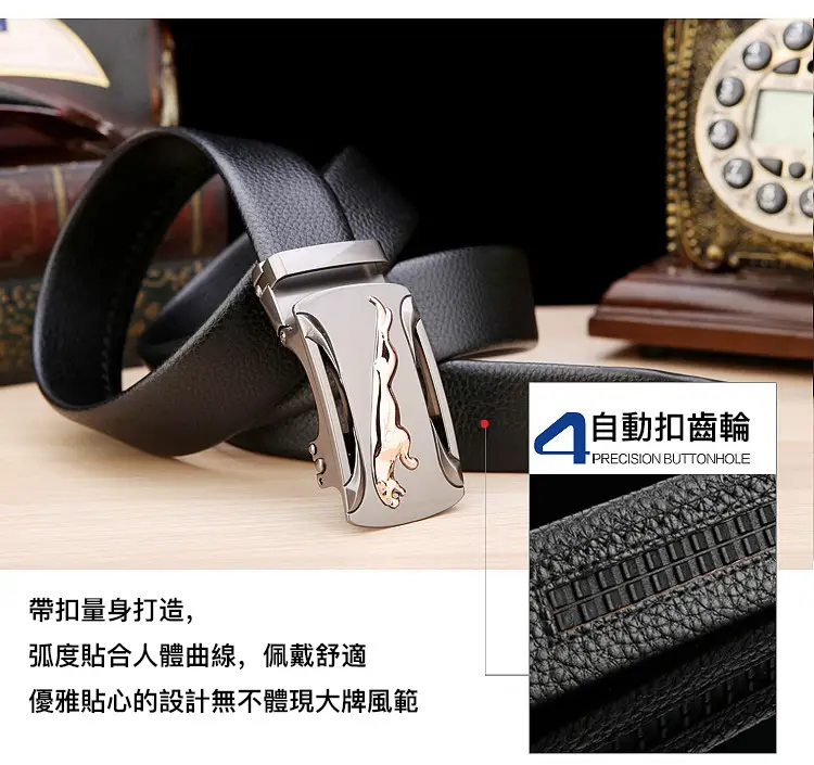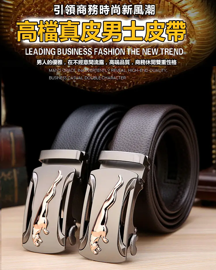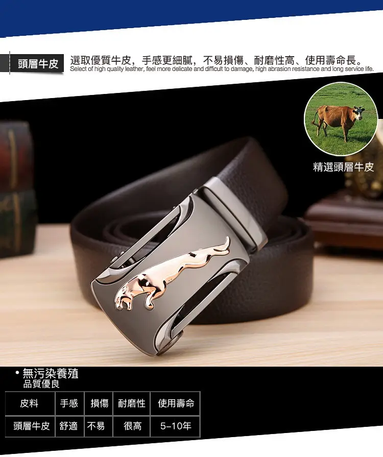 20分鐘前【官方站】男士獵豹自動扣真皮腰帶 【能用十年的真皮腰帶】 整張牛皮裁剪打造,純手工製作,耐磨耐折耐用,品質高端,彰顯男士成熟魅力