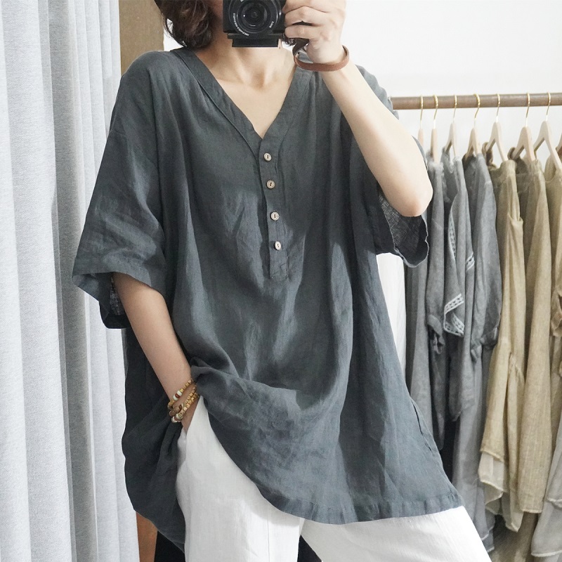 5分鐘前【買一送一】時尚寬鬆純棉文藝復古半袖上衣~遮肉顯瘦,舒適材質,柔軟親膚透氣,適合當季! - 精選三入 均價422/件!三色全入! NT$ 1268
