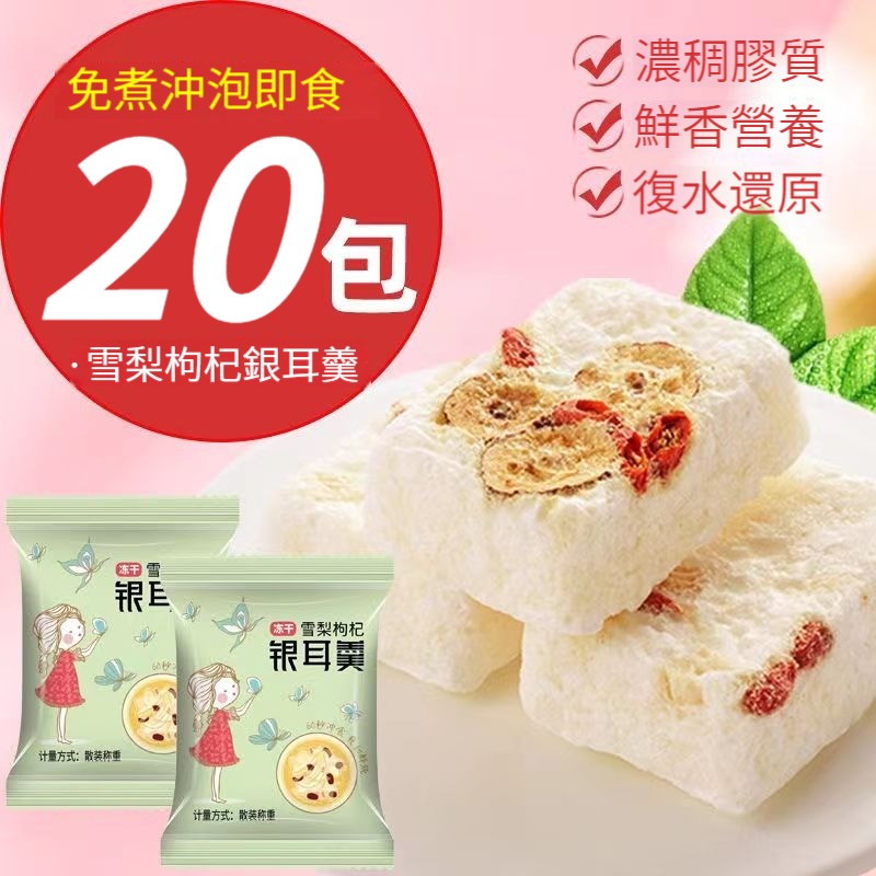 15分鐘前冻干银耳羹红枣雪梨枸杞莲子免煮速食低脂零食冲泡微甜银耳羹 - 【20包】僅需920